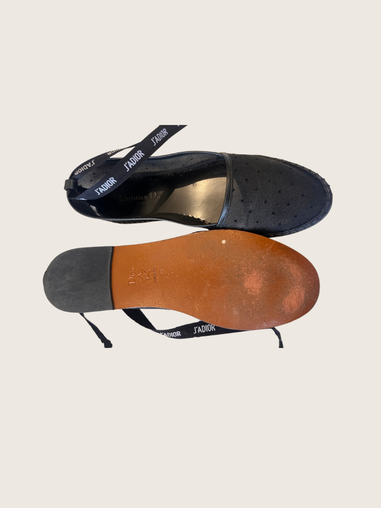 Christian Dior Fabric Ribbon Embroidered J'Adior Ballet Flats in black - Sz 40 - Good Condition