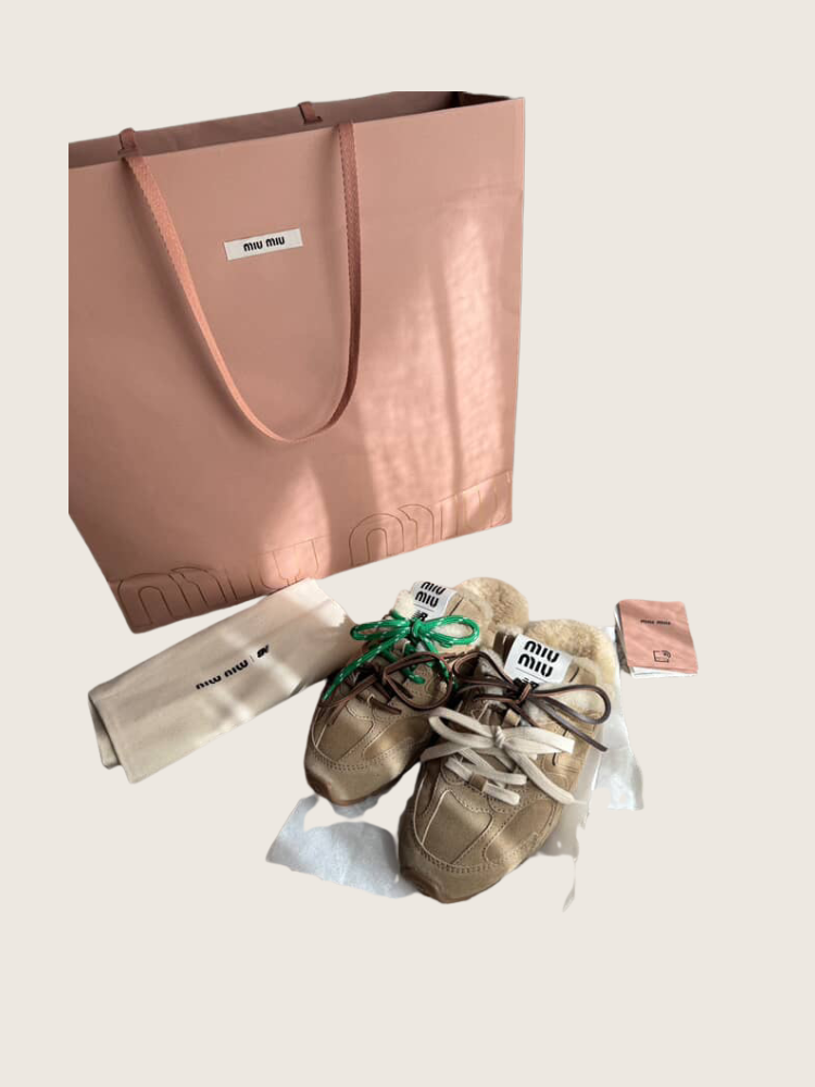 MIU MIU x NB Shearling Suede Mules - Size 36 - Excellent Condition